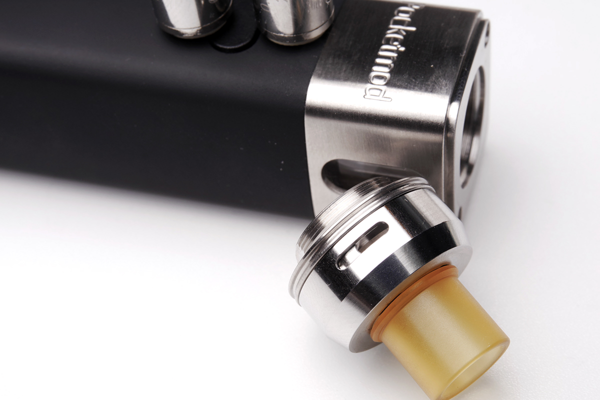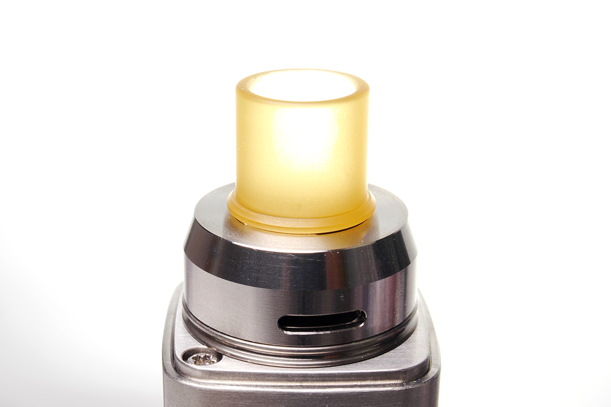 ▲510ドリップチップなので、手持ちの好きなドリチを装着することが可能です。ただし、あまり長いドリップチップを付けるとキャップが閉まらなくなってしまいますが。