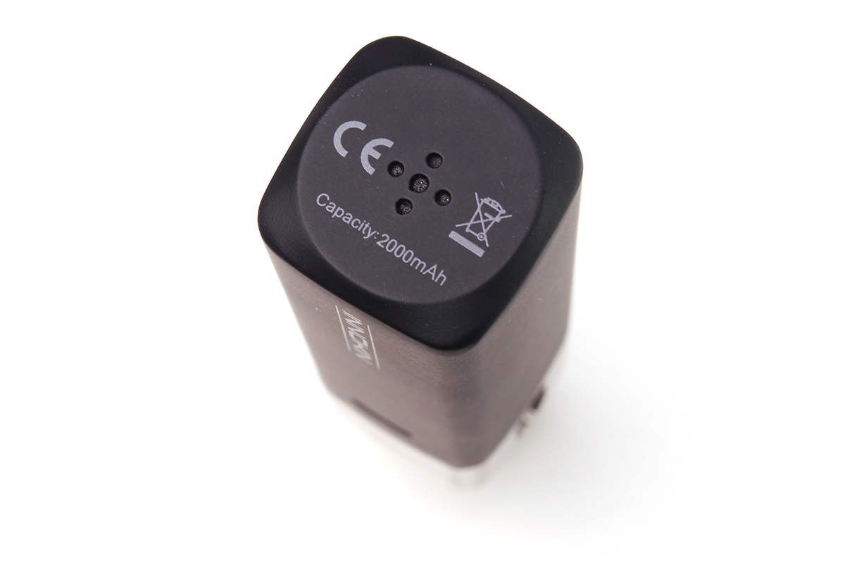 ▲底部にベントホールと、バッテリー容量2,000mAhの記載。なかなか心強いバッテリー容量です。