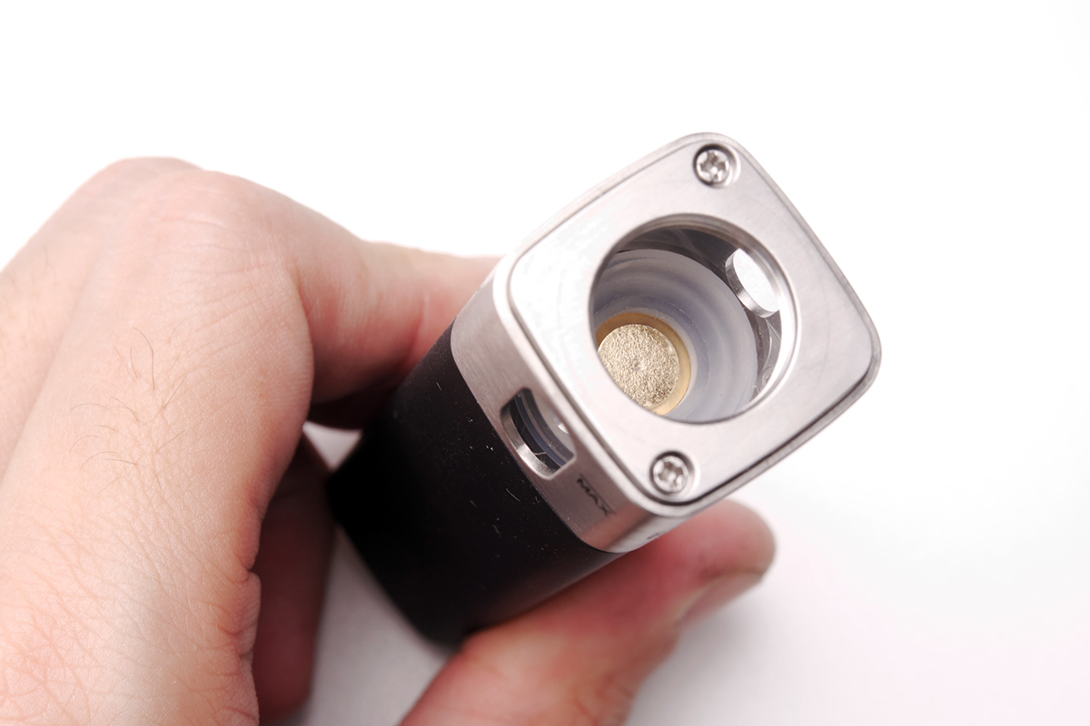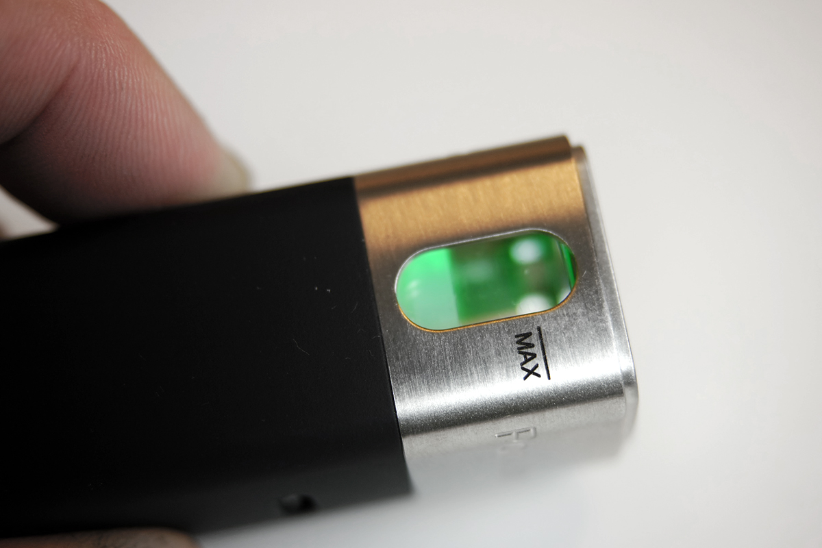 ▲もちろんパフ中も光ります。インジケーターは小さく控えめ。バッテリー残量に合わせて緑→黄→赤(要充電)と変化します。