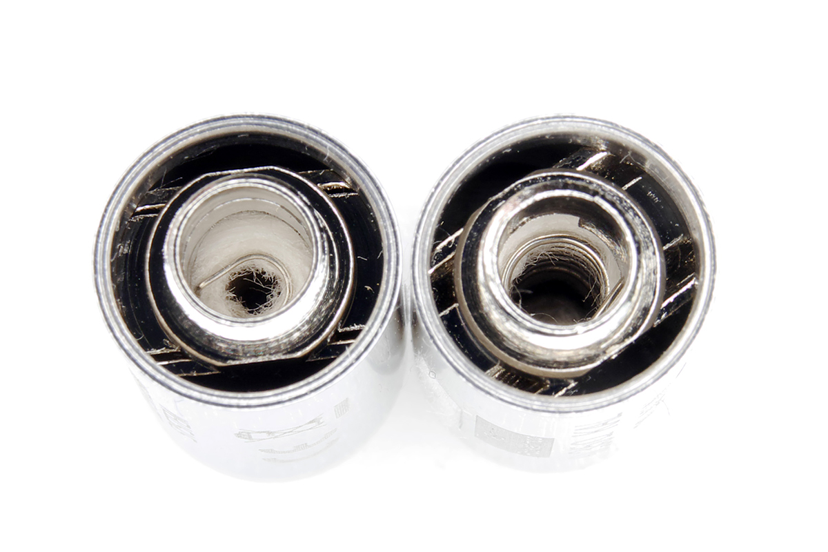 slipstream用コイルを使っているのは、やたらコイルの種類をコロコロ変えられるよりもユーザーとしては嬉しいのですが、pocketmodはタンク形状がslipstreamと違うのでリキッドが残り少なくなってくるとコイルのリキッドホールにリキッドが当たらなくなってしまいます。結果もちろんドライに。