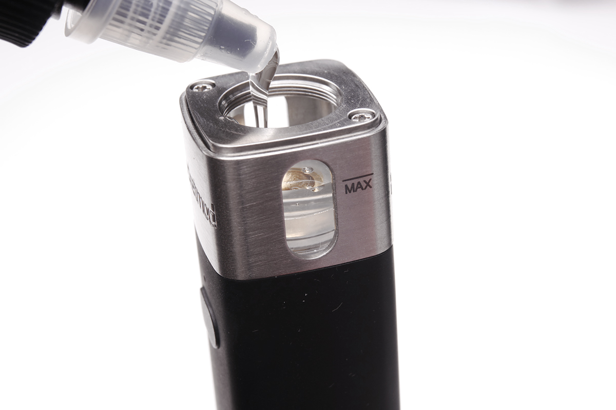 ▲横にはMAXと書かれたラインがありますので、そこまでリキッドを入れることができます。
