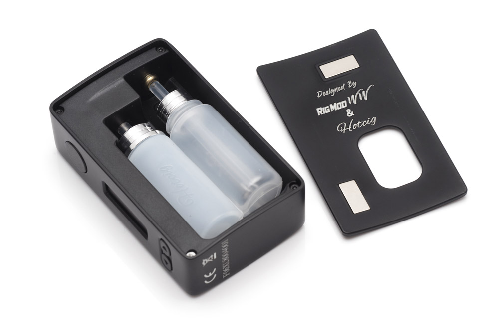 シリコンボトルとPEのボトルです。好みが分かれる部分なのでどっちもあるのは嬉しいです。丁度バッテリーと同じの18mm径で、接続に関してもパイプにチューブを差し込むというごく普通のタイプなので汎用ボトルも使えると思います。でも最初から両方入ってるのは嬉しい。