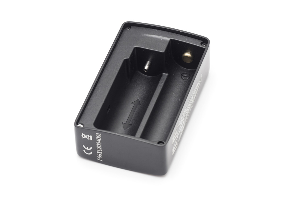 逆に底部は+接点で固定式の平坦なものが付いています。バッテリースレッドの高さも無理が無くてバッテリー装着も快適。バッテリーを外すリボンが付いていませんが、ボトルをヒョイと持ち上げて避ければバッテリーは指で普通に外せます。またはポンと手ではたけばカンタンに外れてくれました。私はリボンがフタに引っかかったりするのが嫌なので、リボン無し歓迎派。