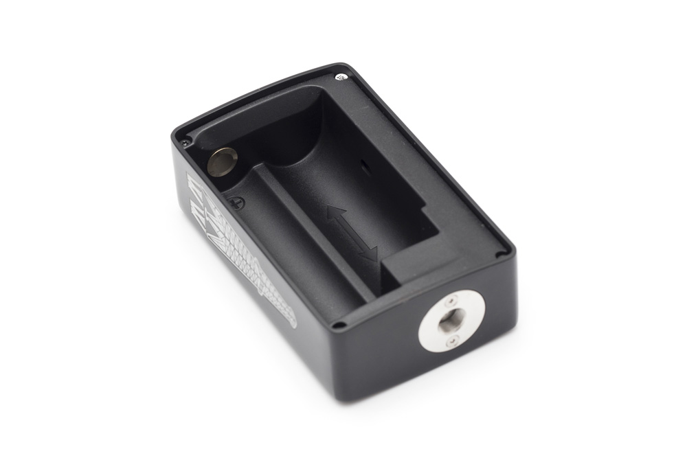 ボトル差し込み口はテーパー状で、スムーズにチューブが差し込めるようになっています。バッテリーの接点は本体の上側が-で、こちらがスプリング式。内部は一体型になっていますので、リキッドが付着したりした場合にも簡単にふき取ることができます。